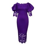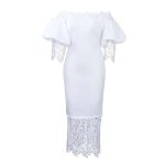 The Trend Fashion Lace Midi Dress Women Off-Neck Bodycon Style is an exquisite addition to any wardrobe, perfect for casual outings or special occasions. This dress features an elegant off-the-shoulder design that beautifully accentuates the neckline while offering a comfortable fit. Crafted from durable polyester with slight stretch, it conforms to your body shape, providing a flattering silhouette that enhances your natural curves. The mid-calf length adds a touch of sophistication, making it suitable for various settings.